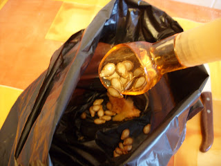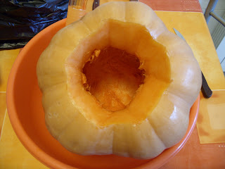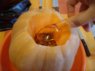 Com uma colher de gelado, limpei as pevides do interior: