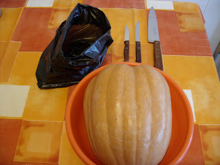 Ora bem, este ano, decidi fazer uma abóbora para enfeitar a casa no Halloween!