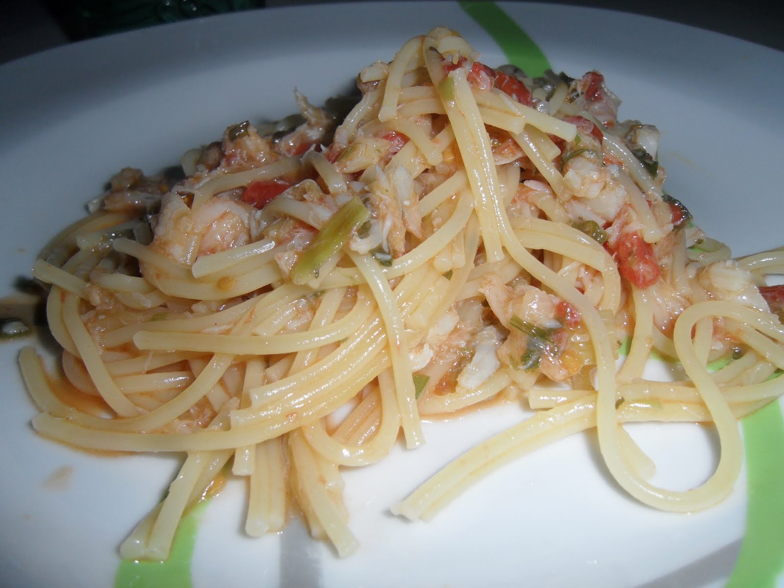 Esparguete com bacalhau e tomate