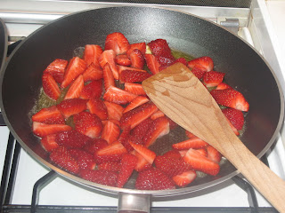 Derreta a margarina numa frigideira antiaderente e salteie os morangos 2 a 3 minutos.